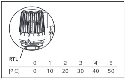 Термостатическя головка RTL снабжена термостатом наполненным жидкостью. Применяеться для установки требуемой температуры теплоносителя в системе теплого пола. Шкала термостата от 1 до 5 (Диапазон температуры от 10 до 50 С)
